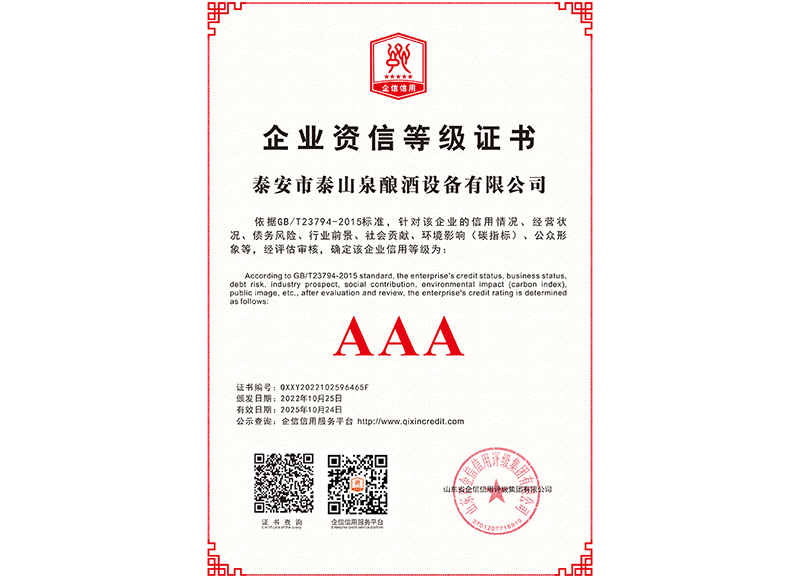 泰安市泰山泉釀酒設(shè)備有限公司,是一家專(zhuān)業(yè)從事釀酒設(shè)備機(jī)械化研發(fā)并集技術(shù)咨詢(xún),工程設(shè)計(jì),制造安裝,人員培訓(xùn)及售后服務(wù)為一體的綜合性企業(yè),本公司主要產(chǎn)品為:大曲清香、小曲清香、大曲醬香、大曲濃香等香型白酒機(jī)械化設(shè)備。 本公司與中國(guó)科學(xué)院自動(dòng)化研究所簽訂技術(shù)服務(wù)合同,引進(jìn)先進(jìn)技術(shù),研究生產(chǎn)全自動(dòng)化機(jī)械釀酒設(shè)備,由中國(guó)科學(xué)自動(dòng)化研究所的技術(shù)支持,打造最先進(jìn)的生產(chǎn)釀酒設(shè)備,公司有信心打造全國(guó)最先進(jìn)白酒...